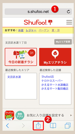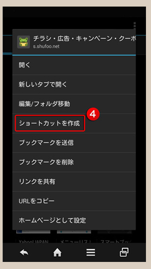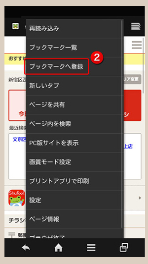 ブラウザのメニューから「ブックマークへ登録」を選択する。